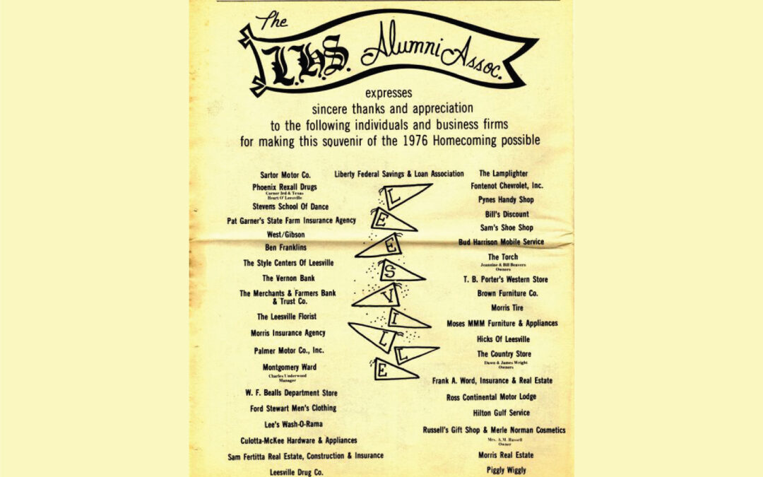 The 1976 Homecoming Program was more than just an annual gathering—it was a reflection of Leesville’s unity, resilience, and shared traditions. Alumni returned to celebrate old friendships, while students embraced the pride of being part of a legacy that continued to thrive. With the backing of local businesses and the leadership of the Alumni Association, the event honored both past and present, leaving alumni with cherished memories and reinforcing the bond between Leesville High School and its supportive community.