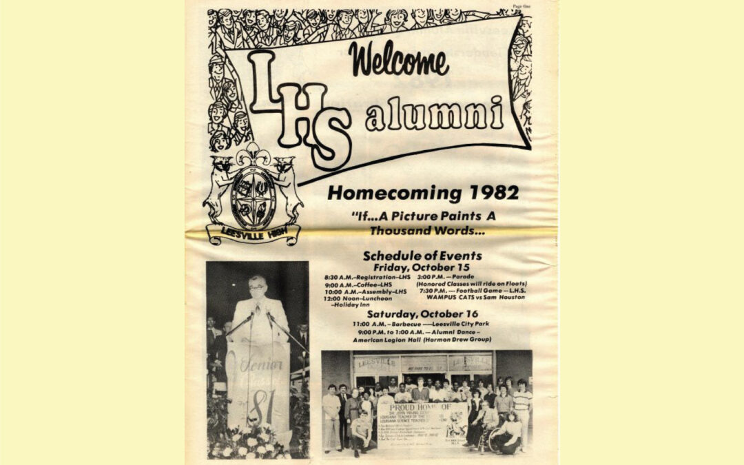 The 1982 Leesville High School Homecoming carried the theme “If…A Picture Paints A Thousand Words,” reminding alumni and students alike that the memories of LHS are not only written in history but also captured in the images and moments shared across generations. Alumni returned to Leesville that October for a weekend filled with tradition, fellowship, and the unmistakable pride of being a Wampus Cat.