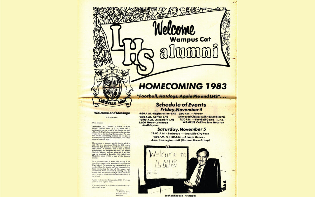 The 1983 Leesville High School Homecoming carried the patriotic and spirited theme “Football, Hotdogs, Apple Pie and LHS,” perfectly capturing the sense of pride and tradition that surrounded the weekend’s festivities. Alumni, students, and the Leesville community came together on November 4–5 to celebrate the Wampus Cat legacy with two days of events that honored the past and embraced the present.